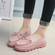 春季大码舒适软底单鞋孕妇鞋厚底蝴蝶结豆豆女鞋平底妈妈鞋护士鞋