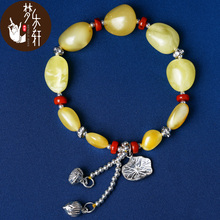 梦乐轩天然琥珀蜜蜡配小雕件925银镀金南红珠子单圈手链