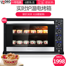 现货UKOEO E8002智能烘焙烤箱家用电脑式商用烤箱大容量多功能80L