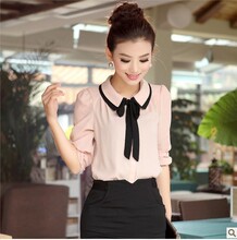 2017春装衬衫修身蝴蝶结 女装加大码打底衬衣雪纺衬衫 韩版职业装