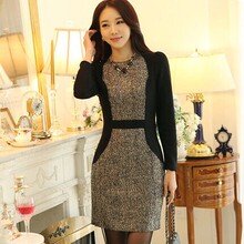 新款秋冬连衣裙OL职业修身大码打底毛呢长袖连衣裙2017新款女