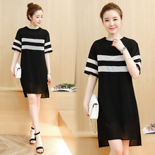 2017夏装新款 简约短袖雪纺拼接女裙 显瘦修身气质打底连衣裙女装
