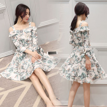 2017年春夏新款 韩版淑女气质显瘦收腰 时尚雪纺碎花女款连衣裙