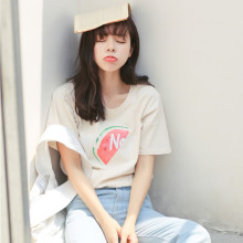夏季新款2017宽松百搭简约休闲西瓜印花短袖圆领学生T恤女