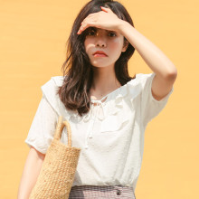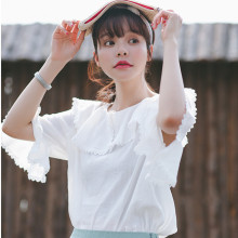 2017夏装新款娃娃领短袖套头衬衫韩版休闲甜美学院风小清新上衣