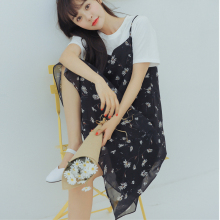 2017夏季新款甜美小清新文艺复古碎花雪纺吊带裙无袖连衣裙学生