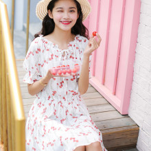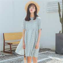 2017夏装新款甜美学院风宽松裙子韩版碎花雪纺中长款小清新连衣裙