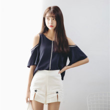 夏季新款2017甜美小清新宽松百搭露肩雪纺衫学生上衣