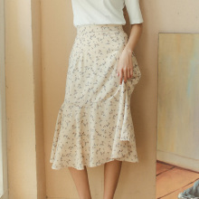 2017夏装新款复古文艺裙子荷叶边中长款雪纺碎花高腰半身裙女学生