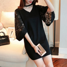 拉丝伊人2016早秋新款韩版女装V领宽袖蕾丝针织底毛衣连衣裙女潮