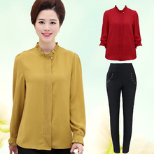 妈妈装春装时尚上衣+裤子中老年女装套装40-50岁长袖衬衫打底衫潮