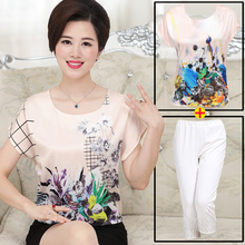 妈妈装夏装套装短袖T恤中老年女装薄款打底衫老年人夏季上衣+裤子