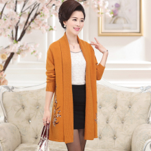 春装新款妈妈装中长款开衫中老年女装绣花针织衫外套中年外搭披肩