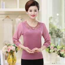 中老年女装春装毛衣外套大码妈妈装圆领套头打底衫长袖上衣
