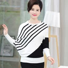 秋冬新款妈妈装针织衫中老年宽松针织打底衫长袖毛衣女上衣套头