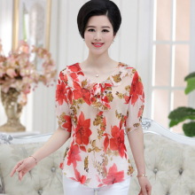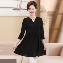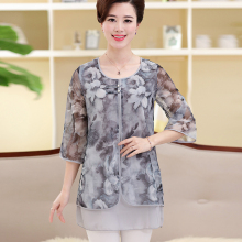 中年妈妈女装春装圆领雪纺衫中老年人韩版中长款妈妈装上衣40岁50