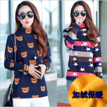 冬季加绒上衣套头毛衣女加厚短款保暖衣打底衫外穿时尚宽松针织衫