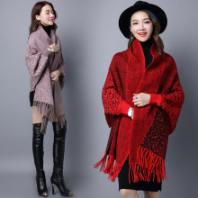 2016秋冬装新款女装针织开衫中长款毛衣披肩外套厚双面斗篷大衣女