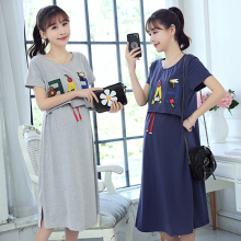 2017新款孕妇装夏装连衣裙长裙 两件套孕妇外出哺乳长裙夏季潮妈