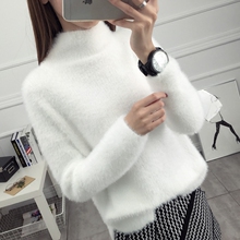 马海毛毛衣女套头半高领秋冬新款韩版宽松厚学院风针织衫打底上衣