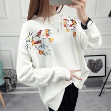 白色毛衣女秋冬套头韩版宽松刺绣纯色上衣女装冬季加厚衣服学院风