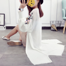 中长款开衫女夏薄款外套韩版宽松刺绣毛衣披肩冰丝针织衫外搭上衣
