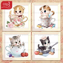 可爱卡通钻石绣圆钻满钻钻石画客厅杯中小猫钻石贴十字绣萌宠动物