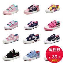 回力童鞋女童帆布鞋公主鞋韩版女大童魔术贴休闲鞋布鞋低帮鞋单鞋