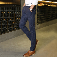 夏季休闲裤男青年英伦小脚裤男士休闲裤修身格子休闲款英伦裤子