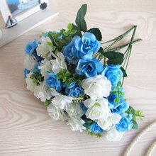 春色澳斯叮玫瑰仿真花束 假花蓝色装饰摆件 客厅饰品简约现代绢花
