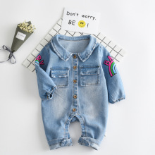 2017宝宝软牛仔连体衣春秋薄款婴儿爬服韩版卡通新生儿外出哈衣潮