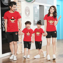 短袖套装亲子装夏装新款2017一家三口家庭装全家装母女装母子装猴