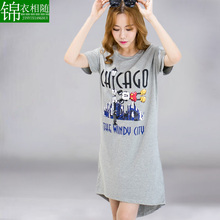 加大码女装胖mm短袖t恤韩版夏季宽松纯棉中长款孕妇装短袖连衣裙