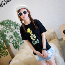 2017夏季修身卡通短袖T恤女圆领韩版学生t桖百搭上衣棉体恤