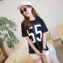 短袖t恤女夏宽松韩版学生百搭数字2017夏季新款圆领体恤打底衫潮