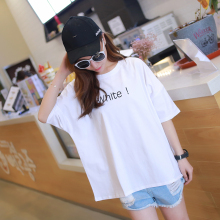 2017夏季韩版新款大码宽松简约印花white圆领短袖T恤学生女装潮