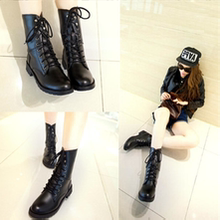 2016欧美中筒靴马丁靴女短靴平底单靴黑色机车靴女军靴骑士靴大码