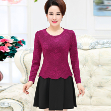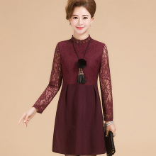中老年女装连衣裙 中年大码春装婚宴礼服长袖蕾丝老年人妈妈装