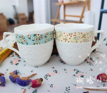 田园风格咖啡杯 碎花马克杯 浮雕陶瓷杯 创意杯子喝水杯