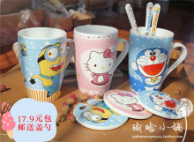 创意情侣杯卡通陶瓷杯子可爱喝水杯陶瓷马克杯牛奶咖啡杯带盖带勺
