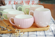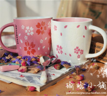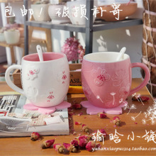 包邮樱花杯三生三世桃花杯子浮雕杯马克杯咖啡陶瓷杯水杯情侣对杯