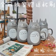 【天天特价】龙猫陶瓷杯子带盖勺大肚马克杯大容量创意水杯咖啡杯