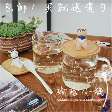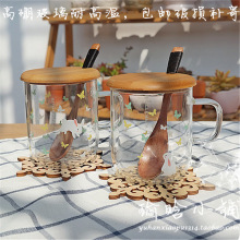 包邮创意卡通立体小动物木盖高硼玻璃杯茶杯水杯家用耐热牛奶杯