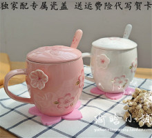 创意樱花公主马克杯带盖勺可爱杯子陶瓷杯简约咖啡杯办公室水杯女