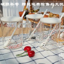 日式和风早餐樱花玻璃杯子可爱随手牛奶耐热水杯ZAKKA透明带盖勺