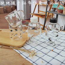 可爱小清新耐热玻璃杯日式ZAKKA带盖水杯套装办公室女杯子送勺垫