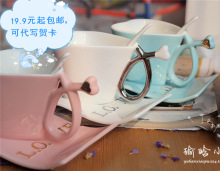 包邮爱心陶瓷杯心形杯马克杯咖啡杯碟带勺生日结婚情人节情侣礼物