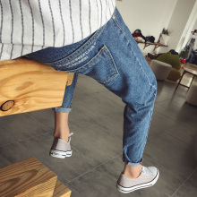 港仔文艺刺绣水洗牛仔裤男士韩版修身款休闲牛仔小脚裤百搭长裤潮