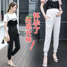 孕妇裤薄款夏季宽松2017新款时尚压折弹力孕妇裤九分哈伦灯笼裤子
