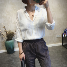 2017秋冬新款文艺简约纯色宽松大口袋翻领棉麻长袖白衬衫女装上衣